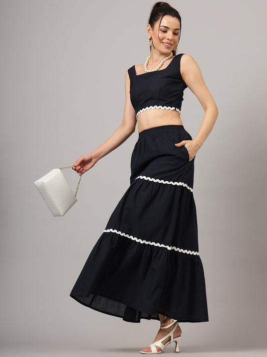 Checked Pure Cotton Top With Skirt Co-Ords