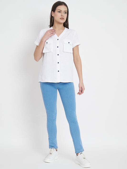 65% OFFV-Neck Cotton Shirt Style Top