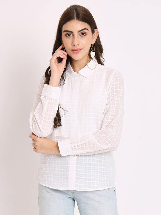 Classic Textured Self Design Spread Collar Casual Shirt