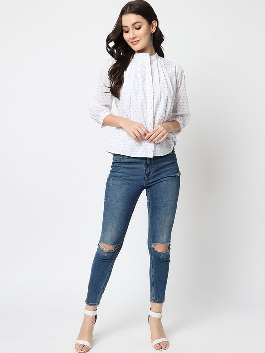 Lavender Round Neck Puff Sleeve Smocked Cotton Crop Top