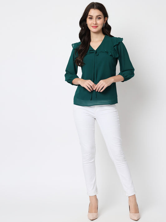 Women's Floral Printed Tie-Up Neck Cuffed Sleeve Chiffon Regular Top