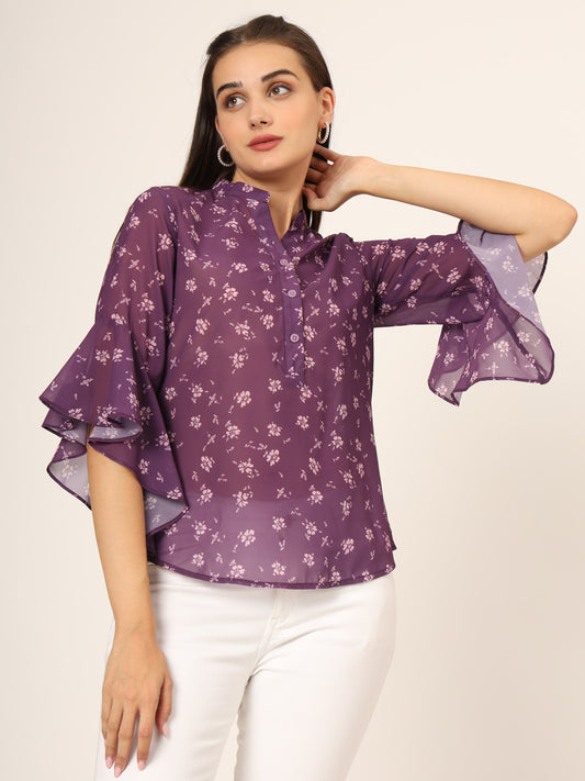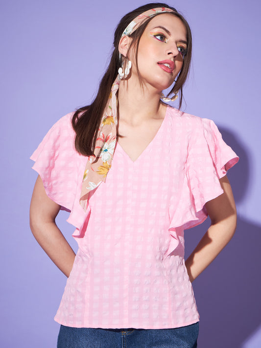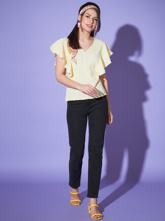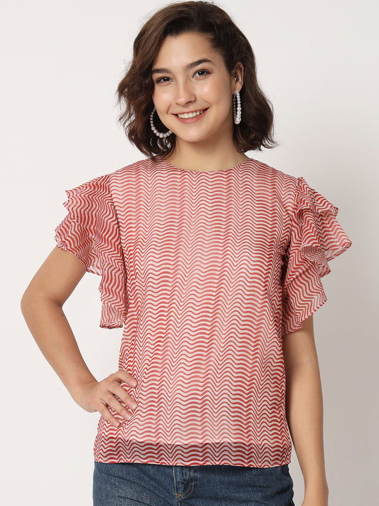 Women's Zig-Zag Printed Flutter Sleeve Top