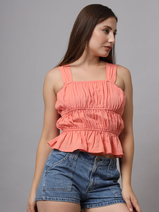 Women Classic Slim Fit Opaque Casual Sleeveless Shirt