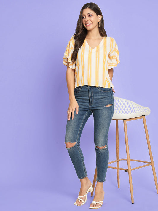 Women Yellow Tie and Dyed V-Neck T-shirt