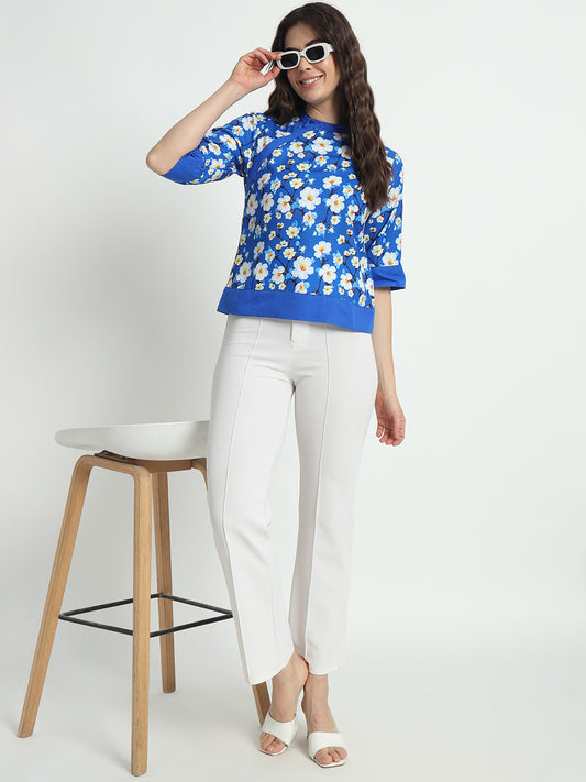 Women Blue & White Relaxed Semi Sheer Paisley Printed Casual Shirt