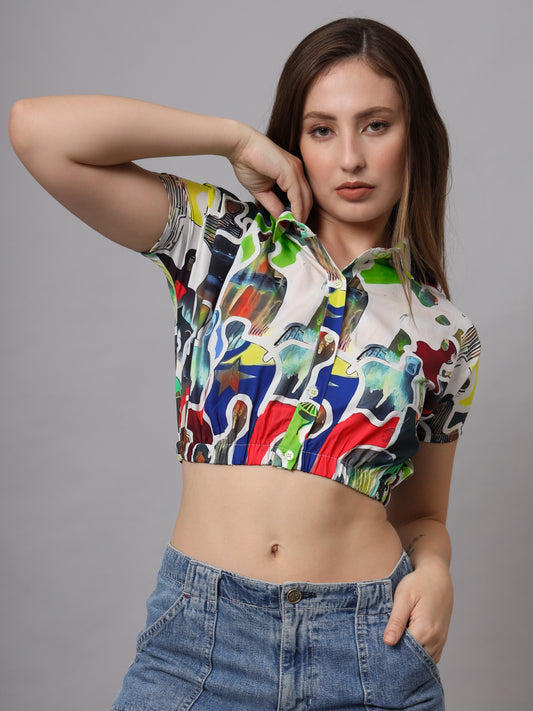 Women Classic Slim Fit Cotton Black Crop Shirt