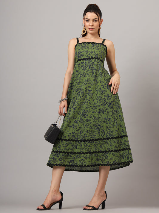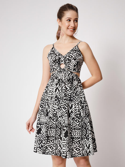 Floral Printed Cut-Out Detail Cotton Dress
