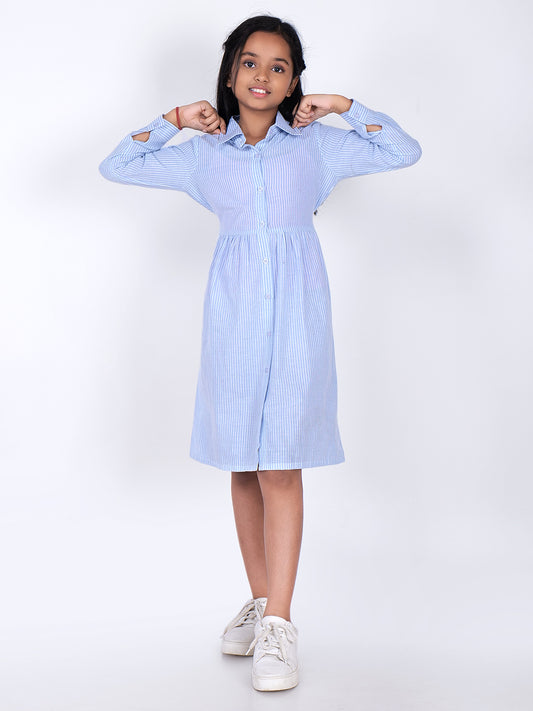 Shirt Collar Cotton Fit & Flare Above Knee Dress