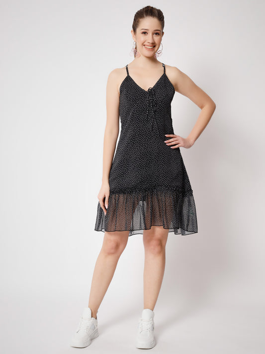 Polka Dots Printed Shoulder Straps Chiffon A-Line Dress