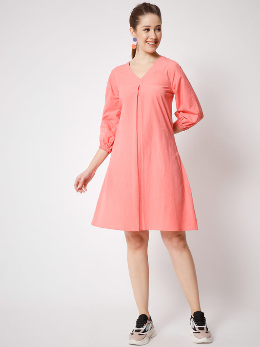 61% OFFV-Neck Pure Cotton A-Line Dress