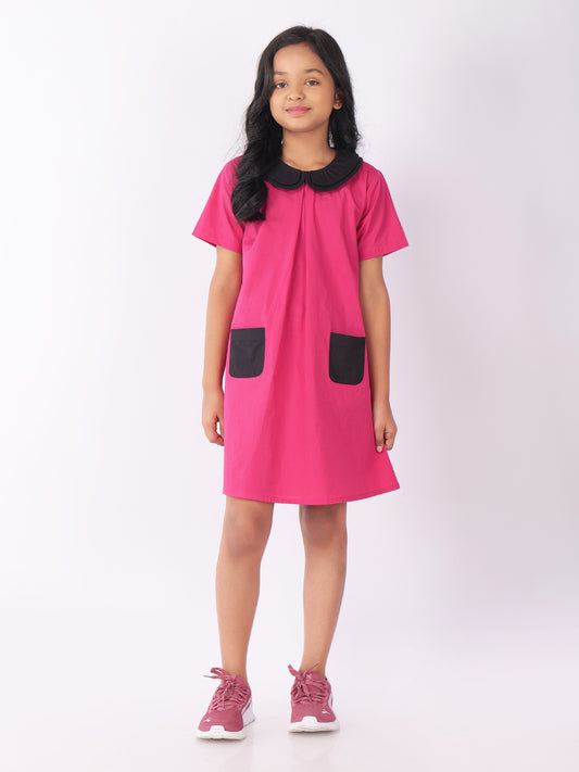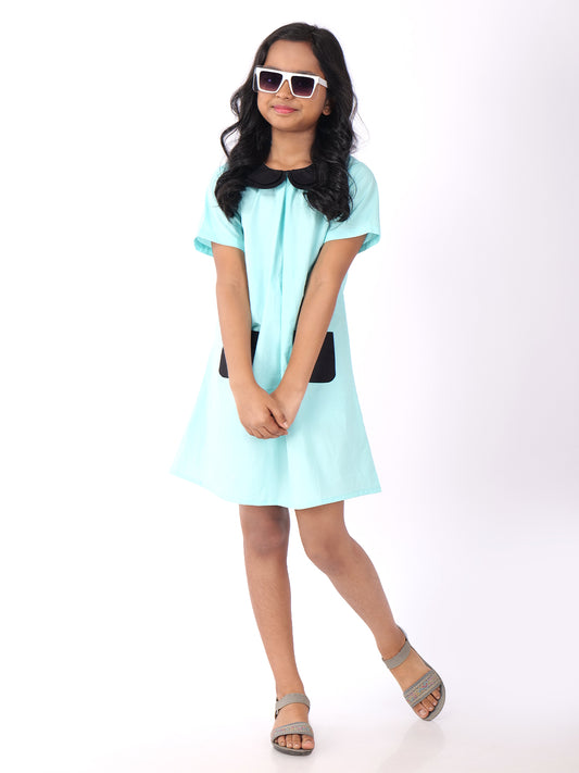Girls Colourblocked Peter Pan Collar Cotton A-Line Dress