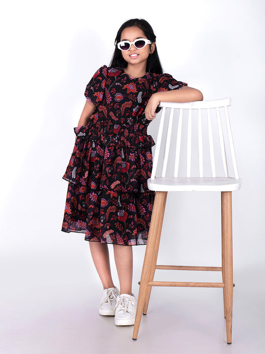 Floral Printed Layered Empire Dress