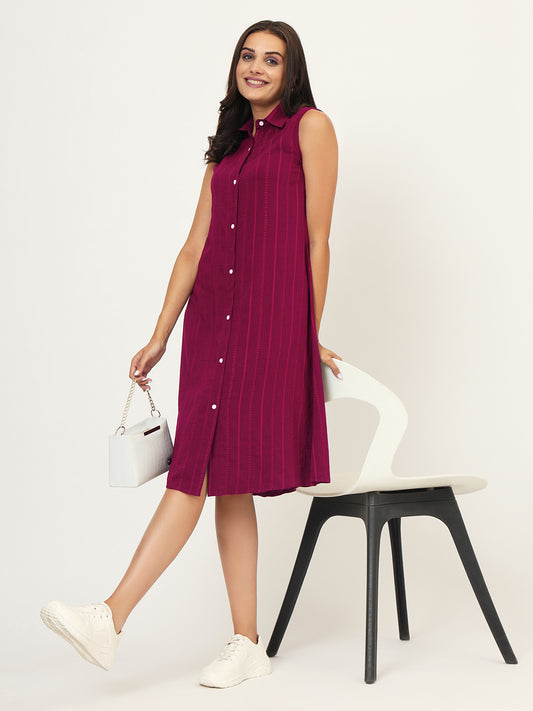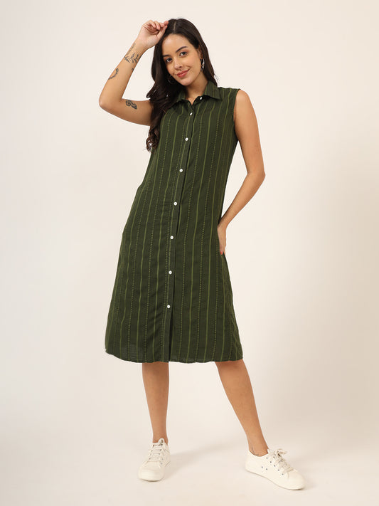 Women Shirt Collar A-Line Striped Dress