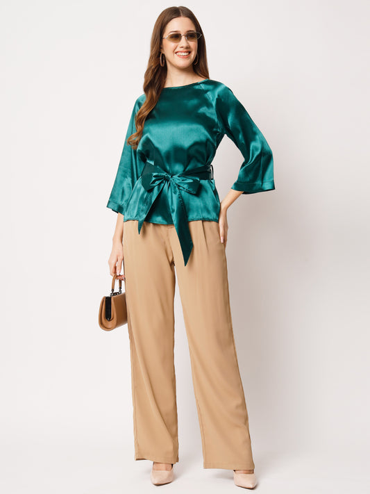 Raglan Sleeves Satin Top With Waist Tie-Up