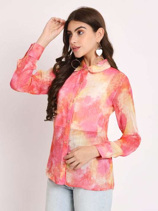 Classic Tie & Dye Dyed Spread Collar Casual Shirt
