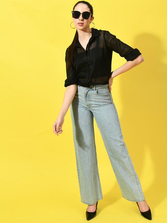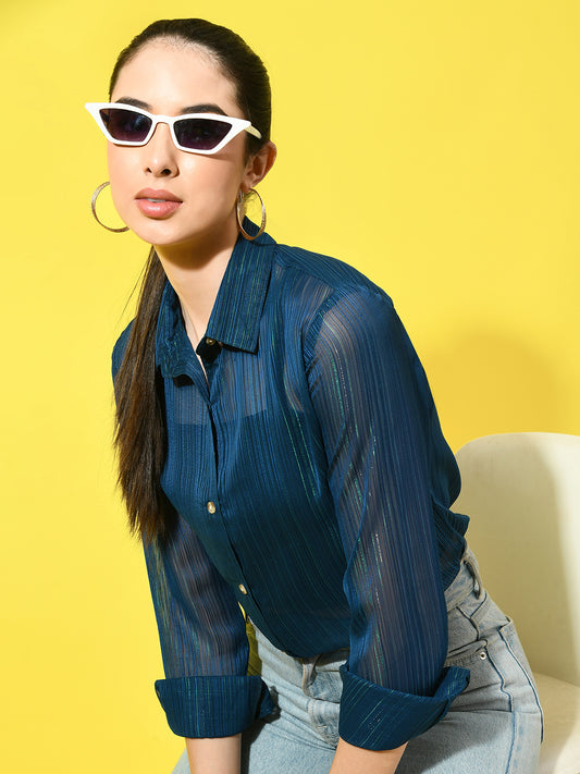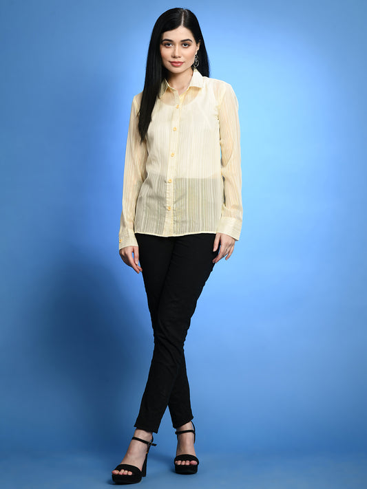 Classic Vertical Stripes Semi Sheer Striped Casual Shirt
