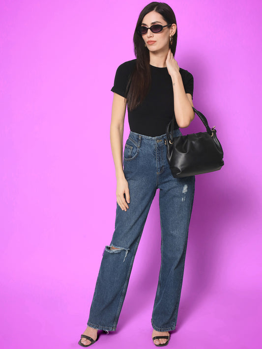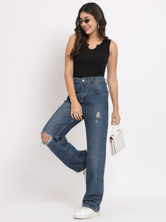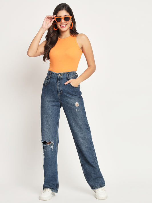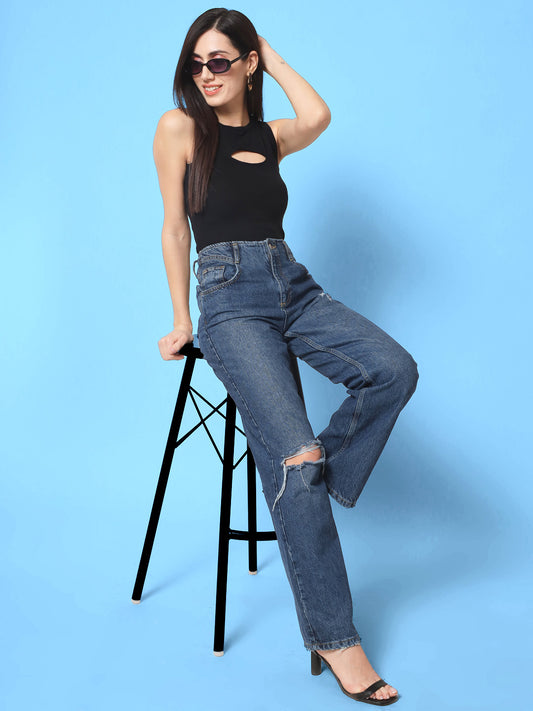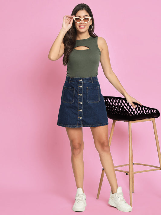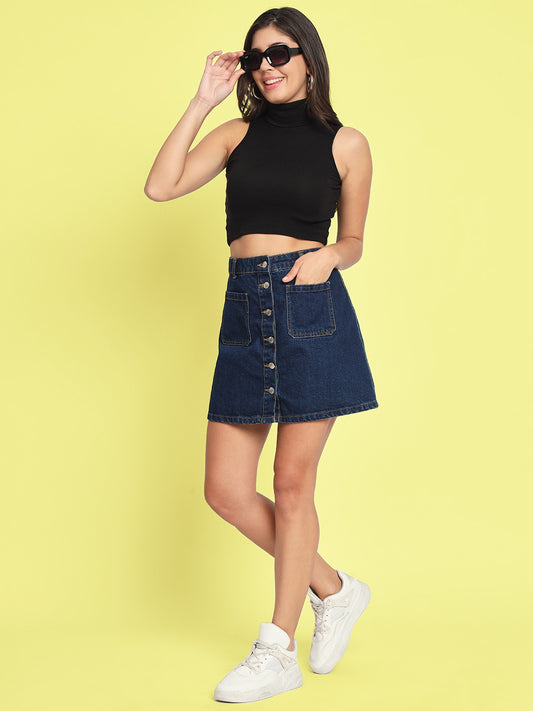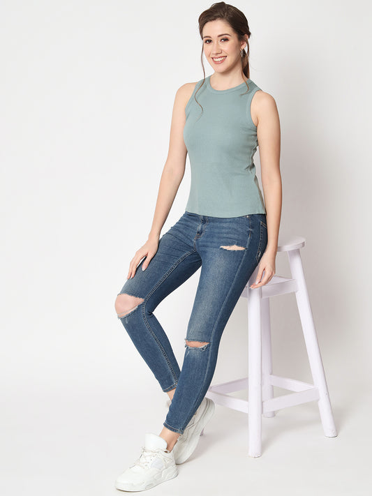 Women's Sleeveless Fitted Blue Crop Top