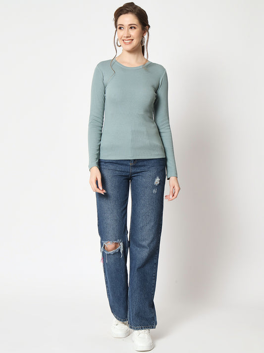 Round Neck Long Sleeves Fitted Top