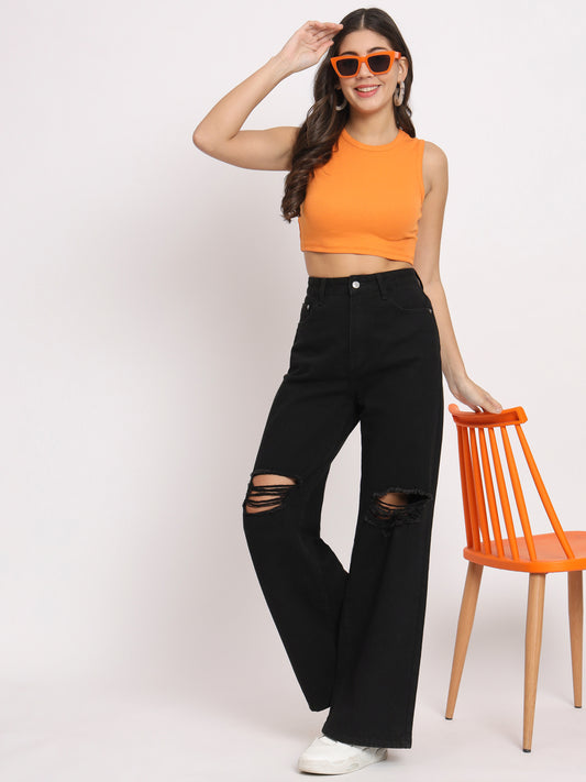 Women's Sleeveless Fitted Orange Crop Top