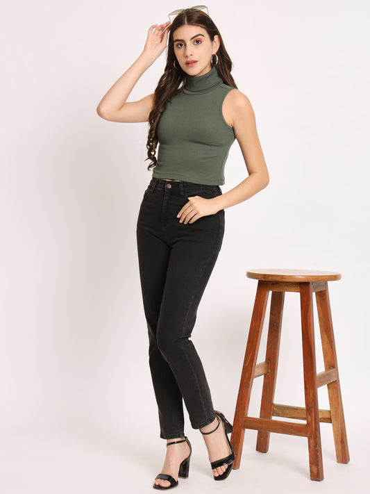 Turtle Neck Ribbed Modal Crop Top