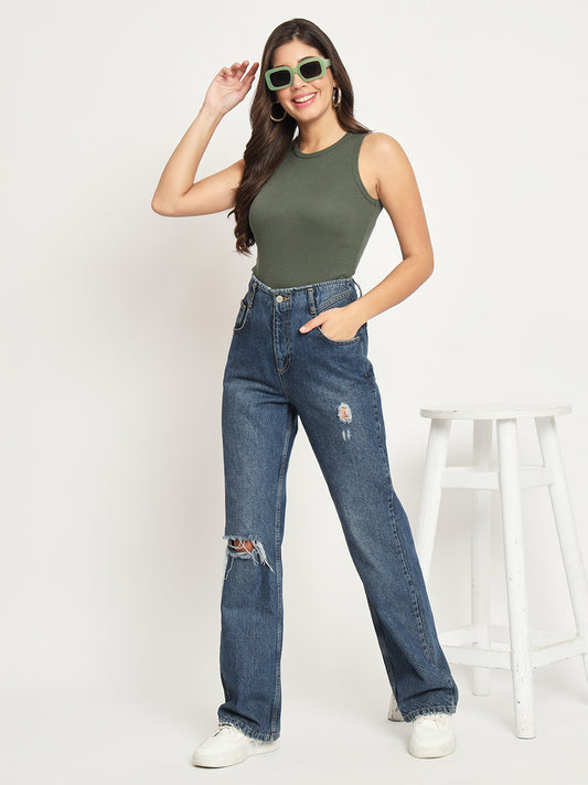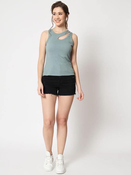 Women's Sleeveless Fitted Olive Top