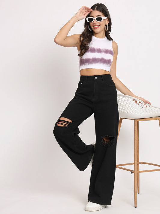 Women's Sleeveless Fitted Tie & Die Crop Top