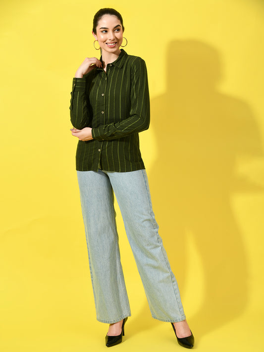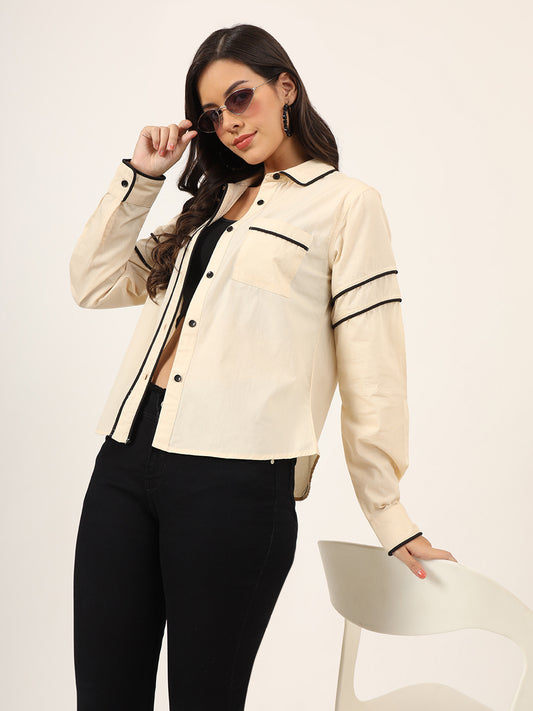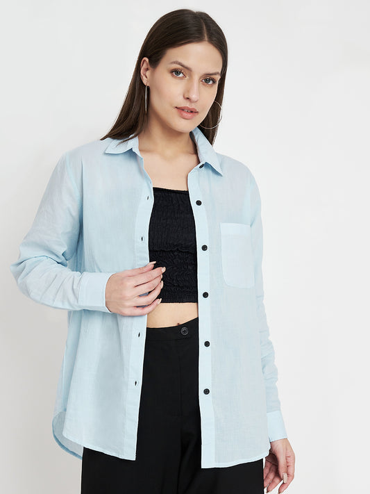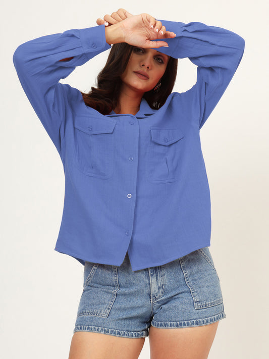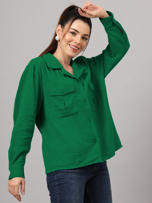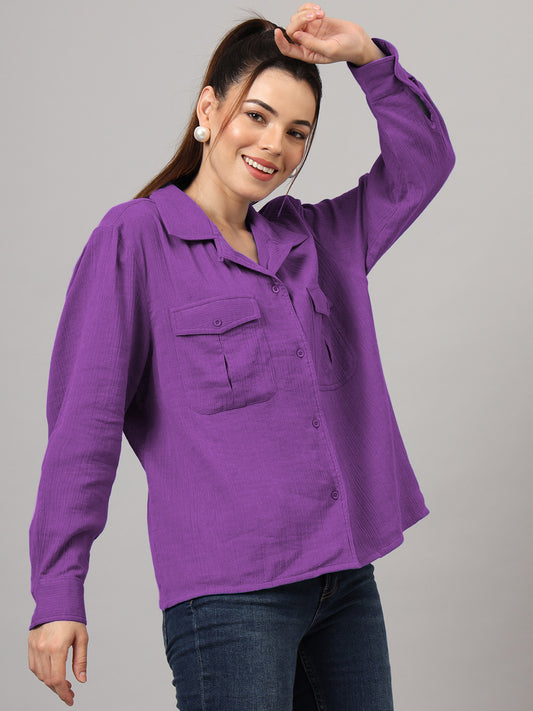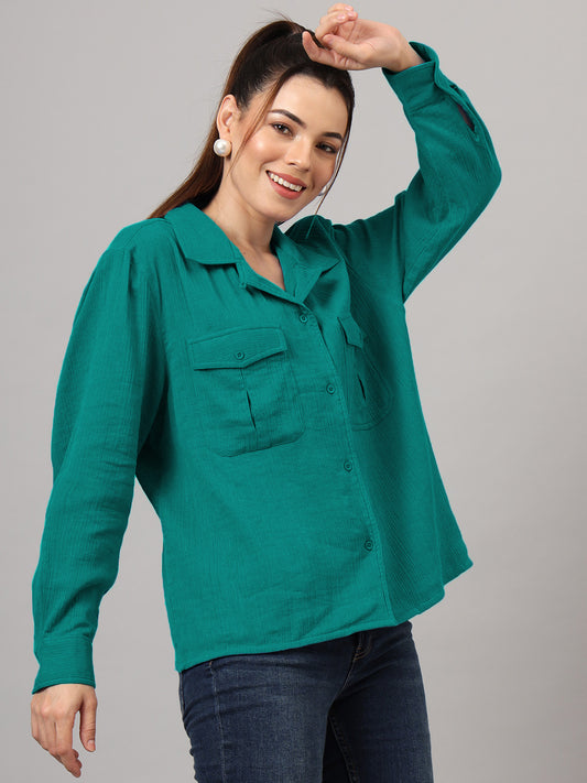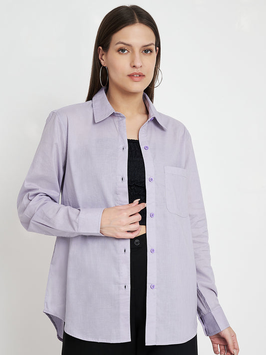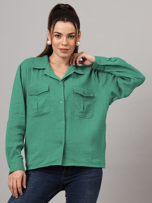 Women Classic Fit Solid Spread Collar Cotton Casual Shirt