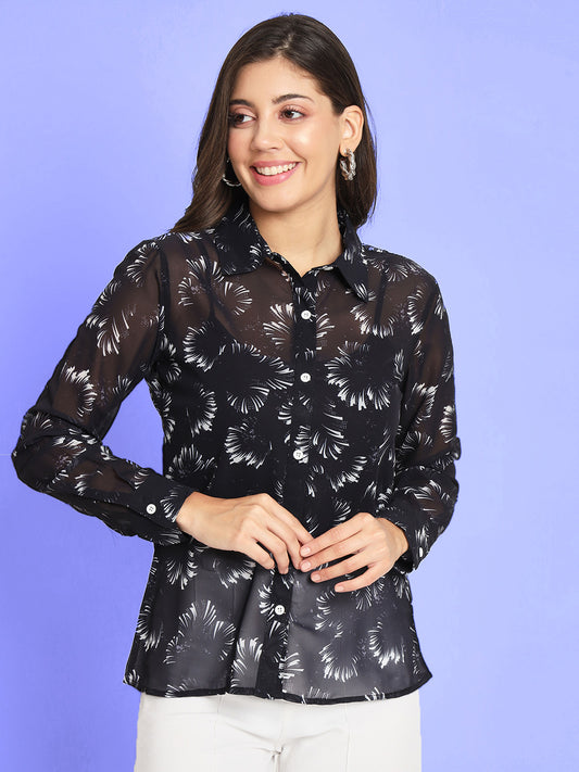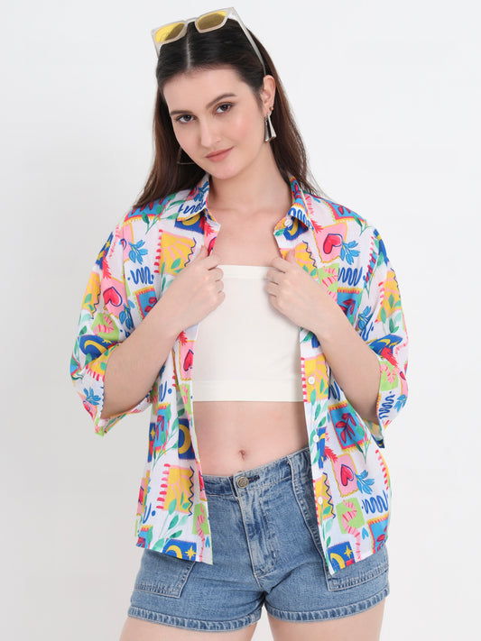 Women Classic Slim Fit Graphic Printed Casual Shirt