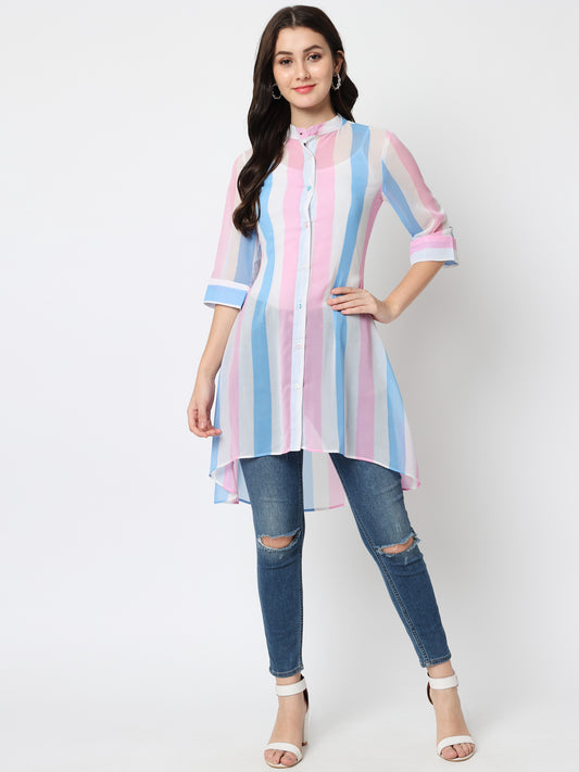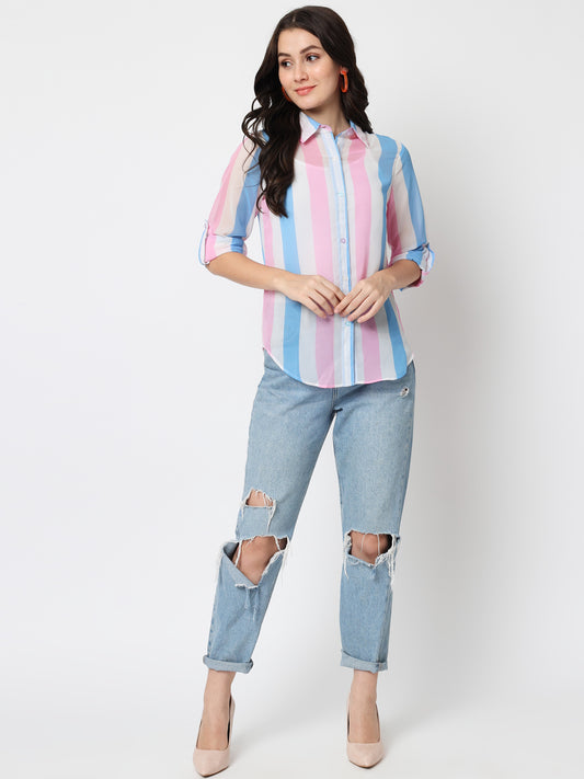 Classic Vertical Stripes Semi Sheer Striped Casual Shirt