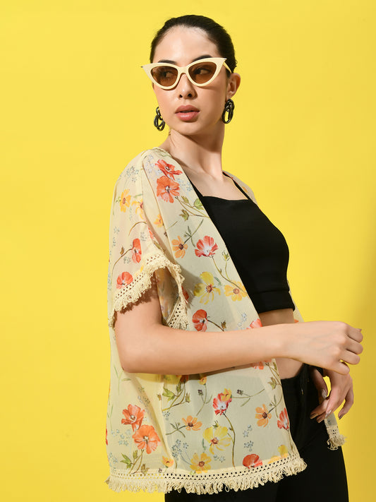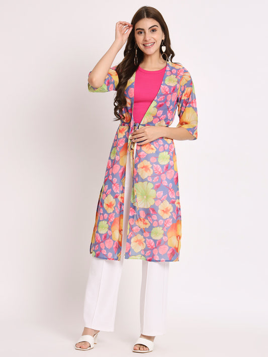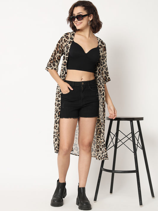 Women Animal Printed Longline Georgette Tie-Up Shrug