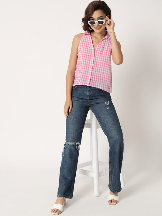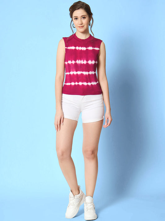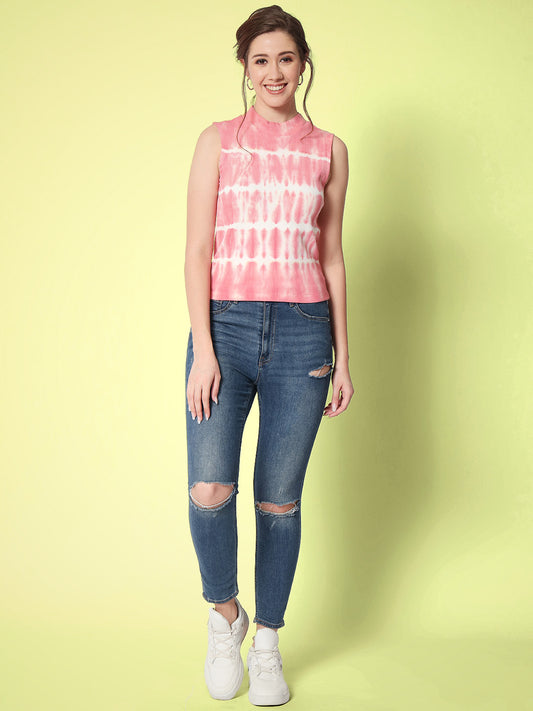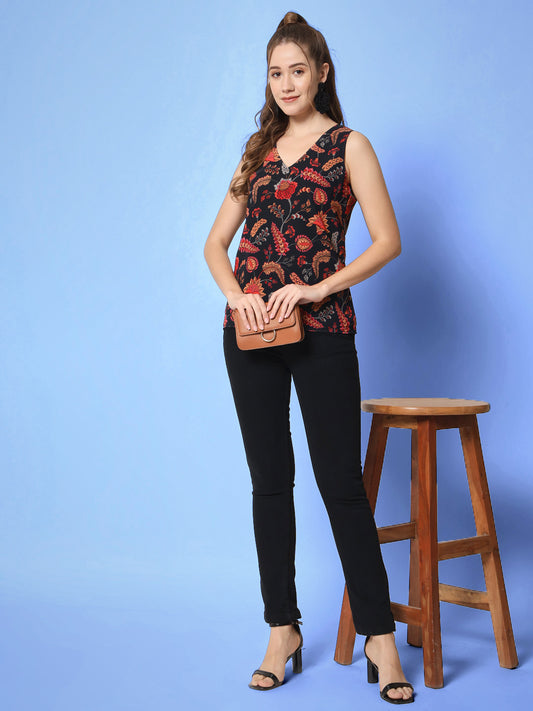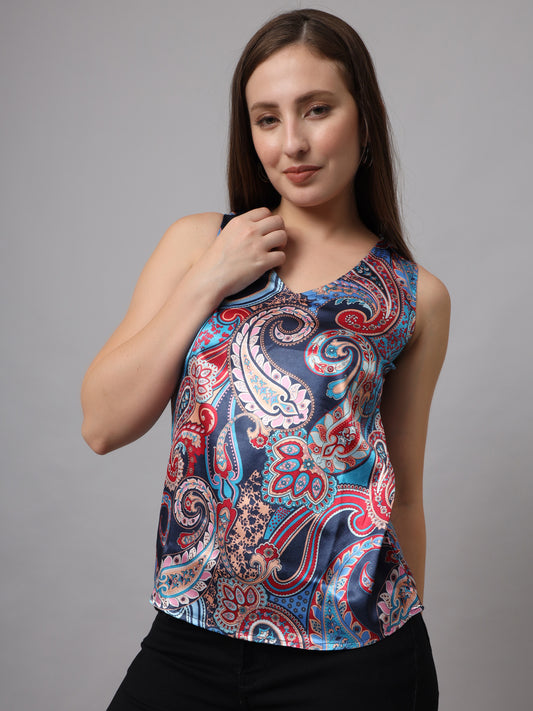 Women's Abstract Printed Sleeveless Shirt Style Top