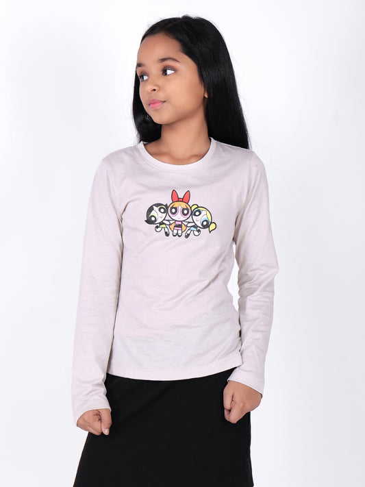 Power Puff Girls Printed Round Neck Cotton T-shirt