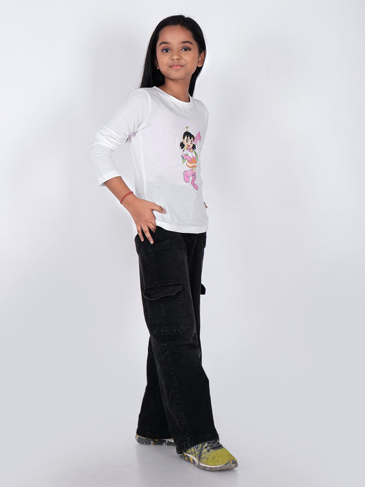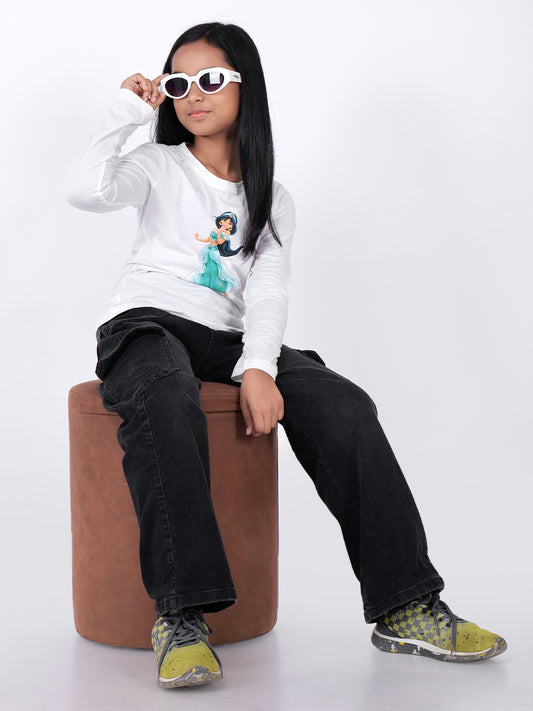 Girls Jasmine Printed Round Neck Cotton Jasmine T-shirt