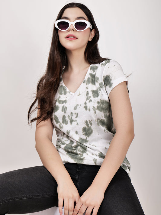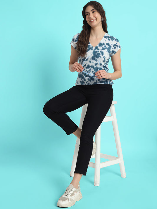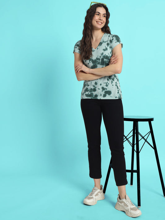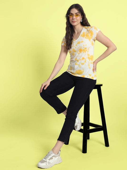 Women Yellow Tie and Dyed V-Neck T-shirt