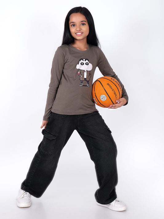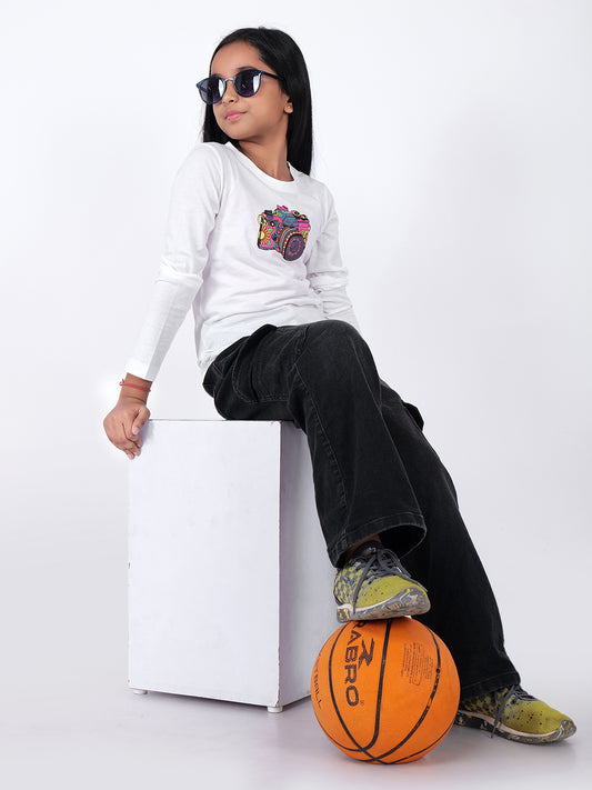 Girls Graphic Printed Round Neck Cotton T-shirt