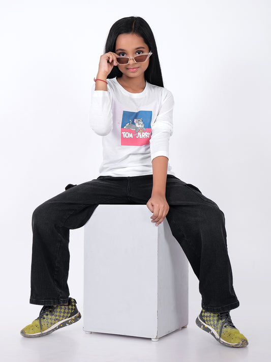 Girls Graphic Printed Round Neck Cotton Tom & Jerry T-shirt