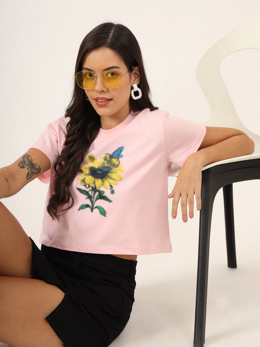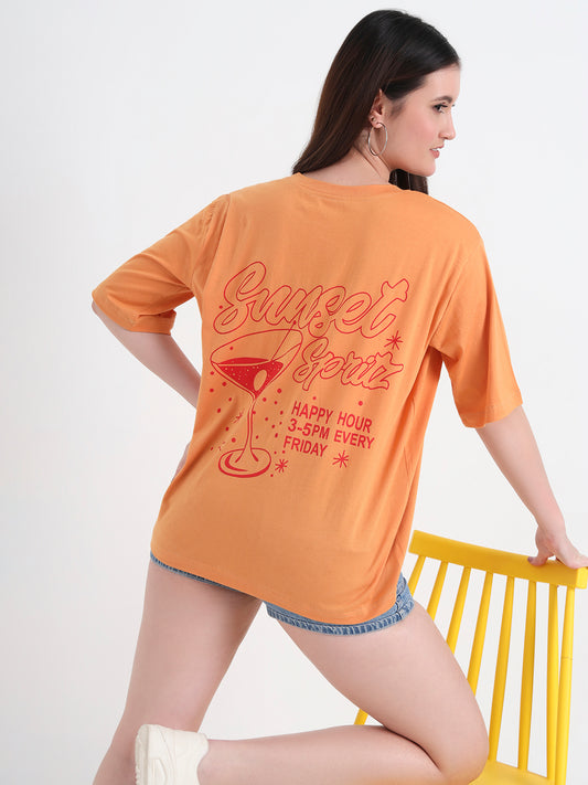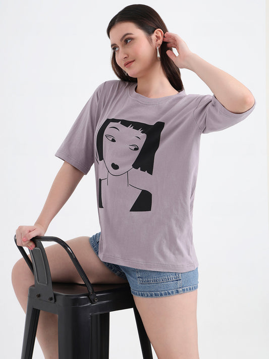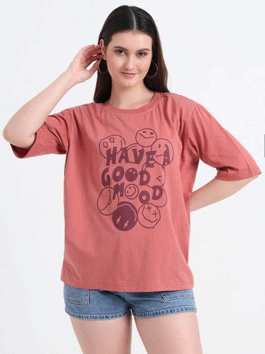 Women Printed Drop-Shoulder Sleeves T-shirt