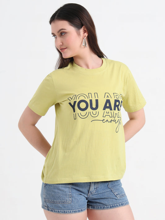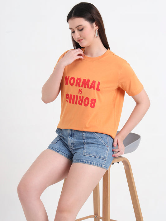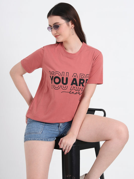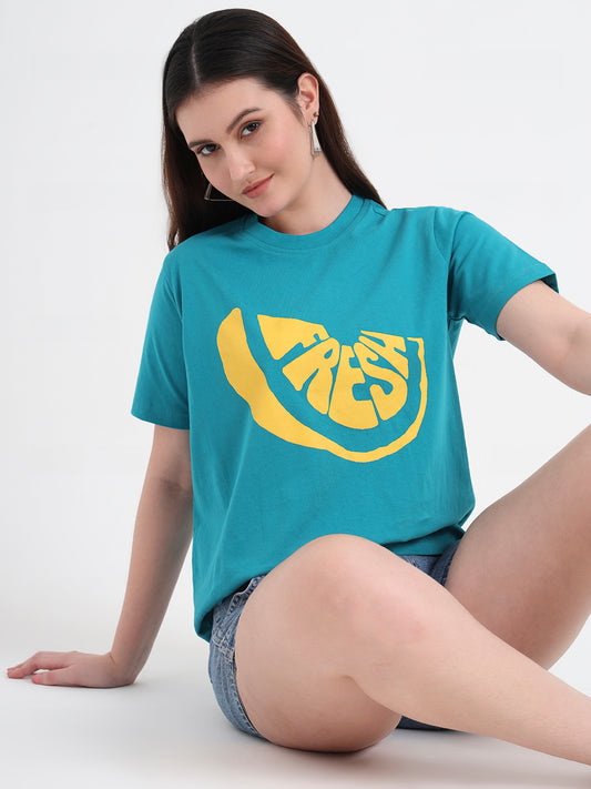 Women Typographic Printed Drop-Shoulder Sleeves T-shirt