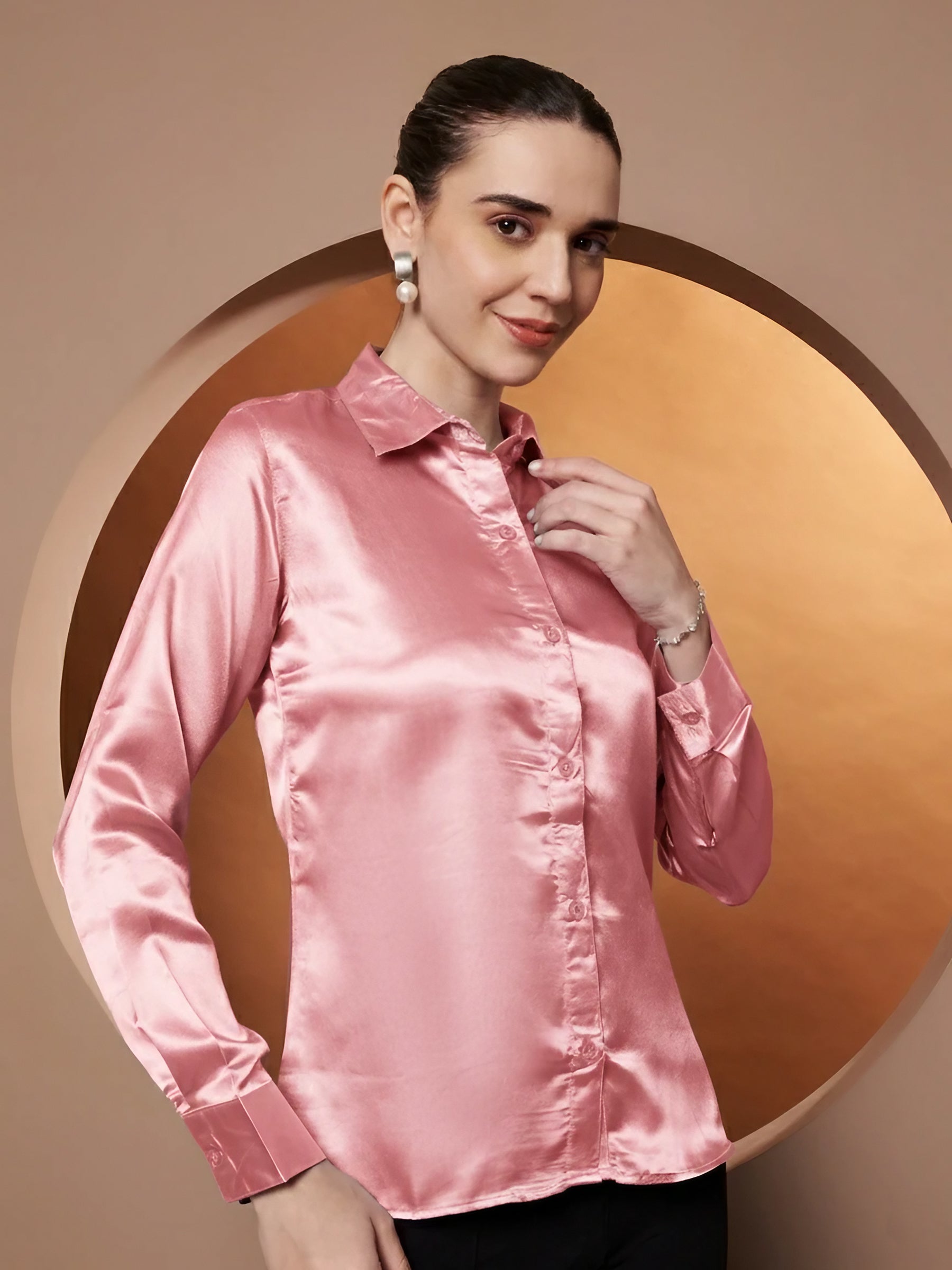 Luxurious Satin Fabric: Made from high-quality satin, this shirt provides a smooth, glossy finish that feels luxurious and looks polished.